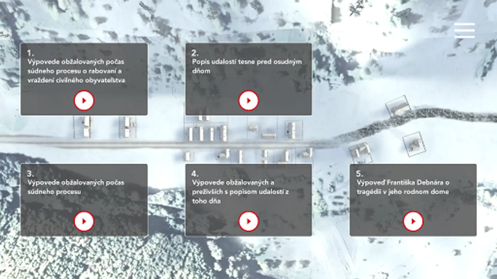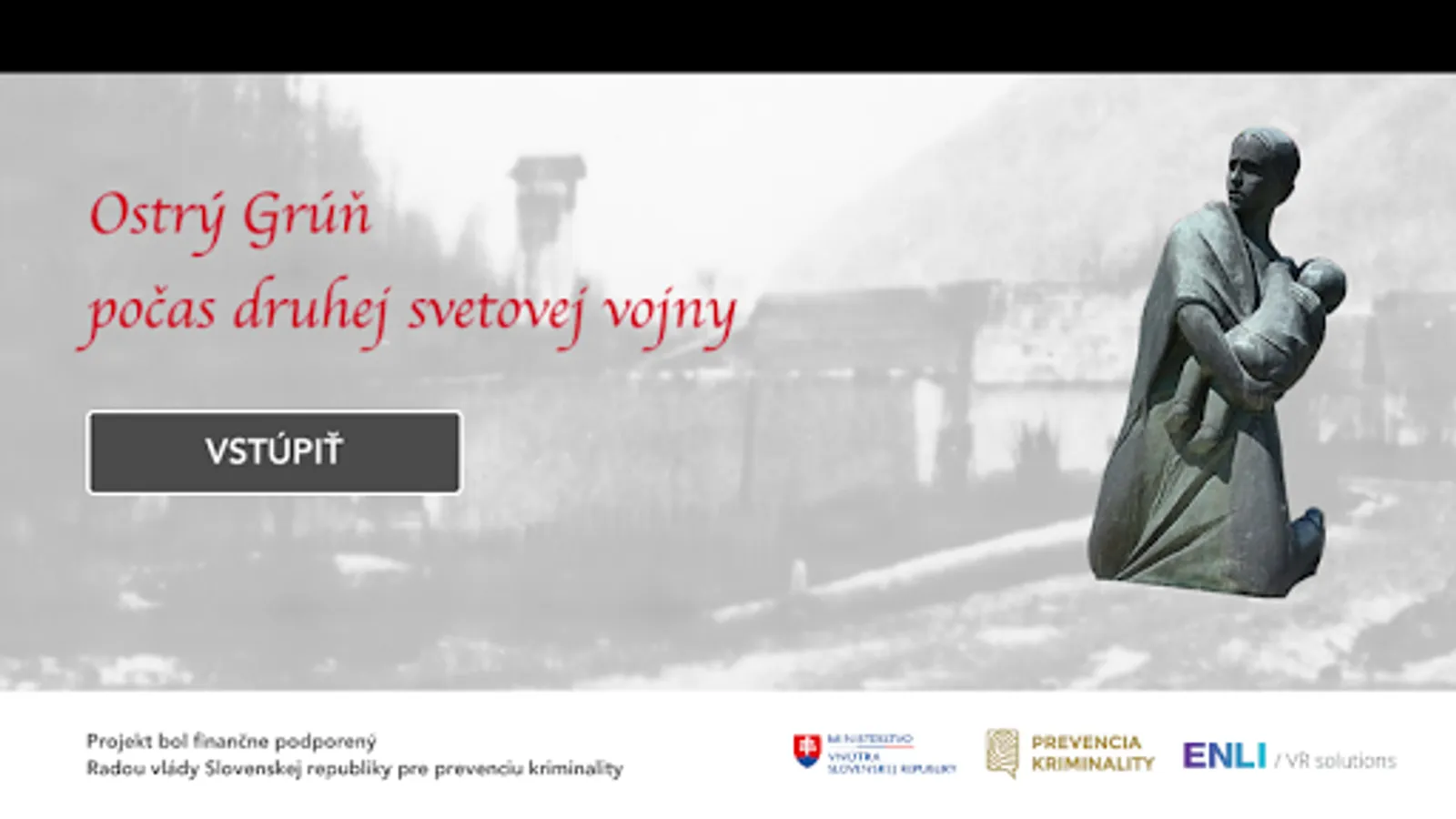 An educational application depicting the village of Ostrý Grúň during World War II, which depicts destroyed buildings in the village of Ostrý Grúň, which was affected by fascist reprisals during World War II. In this innovative way, the project aims to bring to the general public the tragic events that took place in this village during World War II, so that people can better understand and try to avoid them in the future. The project aims to contribute to the prevention of violence, xenophobia, intolerance and racism.