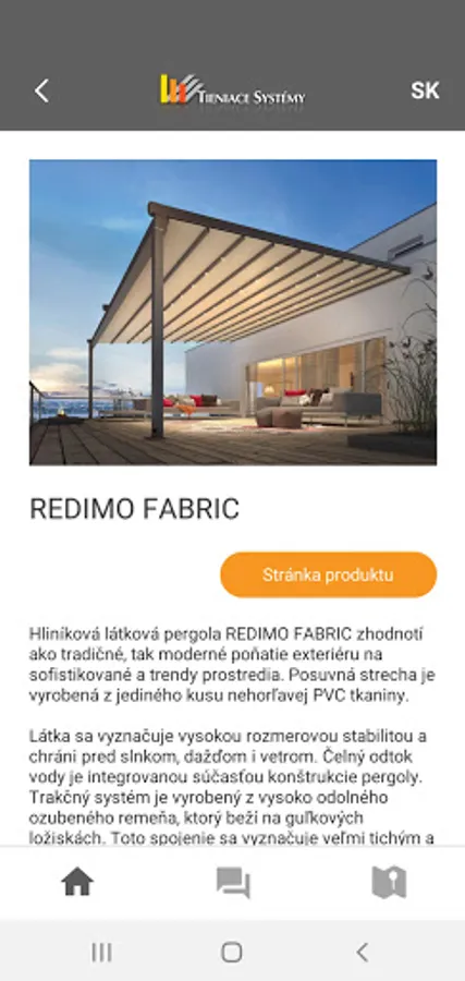 The team from Tieniace Systémy company brings you the opportunity to try a pergola or shading blind with the help of augmented reality technology in this application before we actually install it for you. The company has been operating in the field of development, sales and installation of shading technology for more than 15 years. We provide a complete process from the focus through the design of the most optimal solution to the delivery of shading technology and its installation. Here you will find all types of shading systems: interior blinds, exterior blinds, interior blinds, exterior blinds, awnings and pergolas. Challenging installations are our domain.