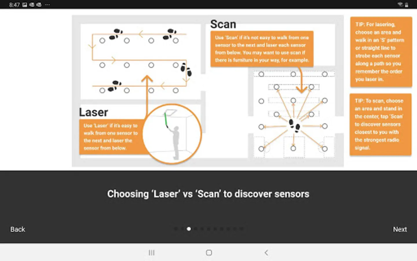 - Easily fine-tune the placement of sensors using an offset “touch pad”