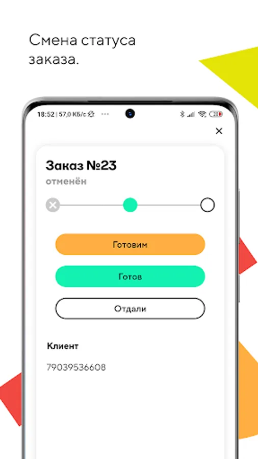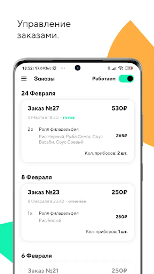 The My Order for Restaurants application helps the restaurant manage orders: accept, prepare and give orders, contact the support service operator, and also gives access to order history.