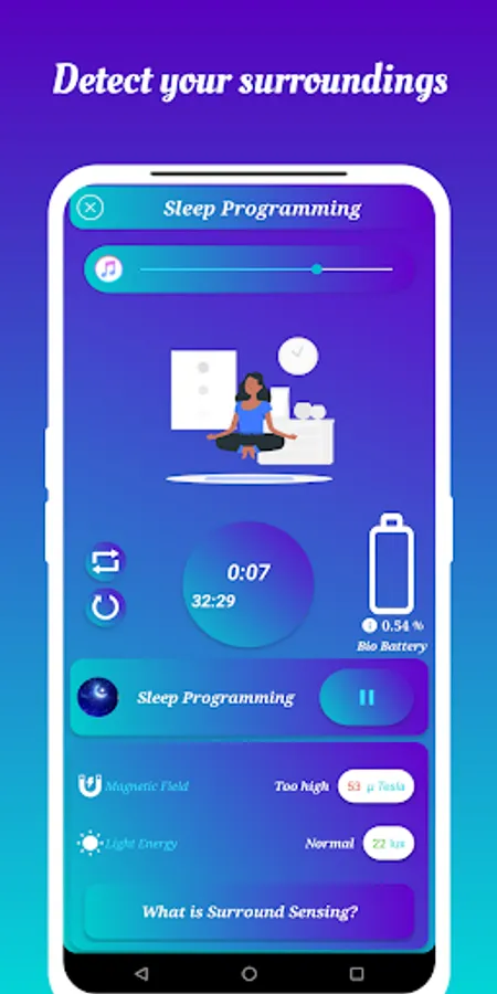 It a feature which includes magnetic sensor and light sensor to help you choose the best environment for meditation.