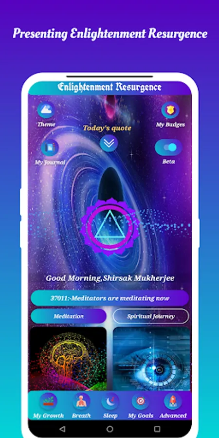 We Enlightenment Resurgence are on a mission to help people meditate in a very simple way and also by using various ways which will help them to achieve any goal in their life, nowadays there are various meditation apps for meditation but Enlightenment is very different because we are not only focusing on calming your mind, removing anxiety attacks, relieving stress but also we are specifically working on the process of Enlightenment which is the ultimate goal of meditation and being a human we need to liberate ourselves to achieve the highest possible happiness.