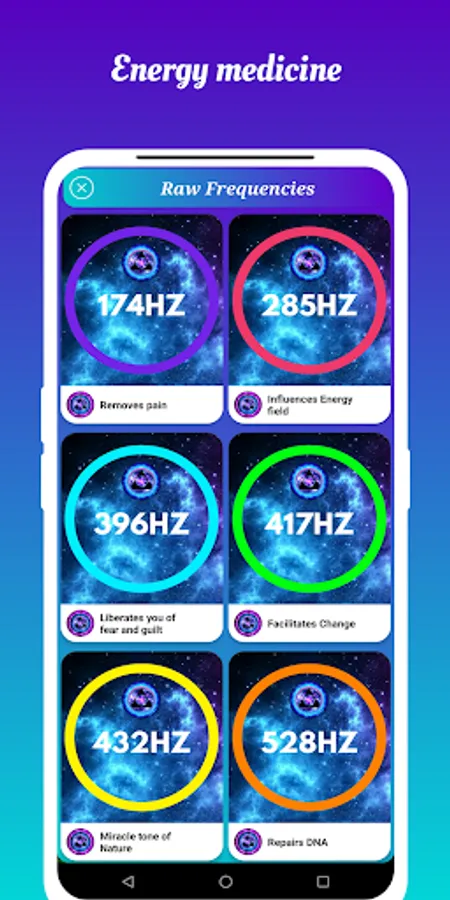This part of app also contains very special types of sound frequencies which is also known as the ancient (solfeggio tones) for health, wealth and happiness, these frequencies are specially designed to target specific part of your energy system to enhance it fully and this feature is also 100% free.