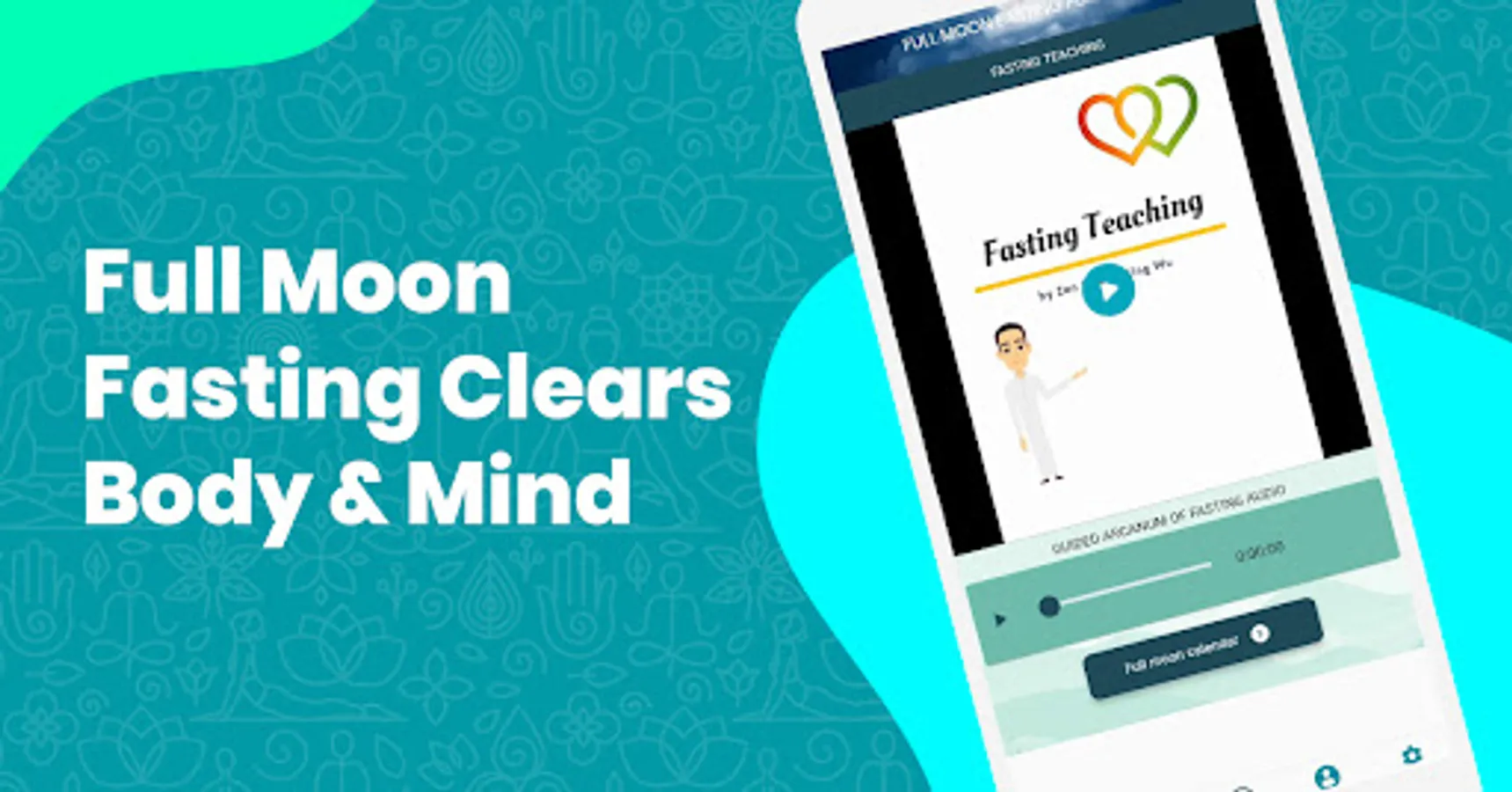 ● Action-learning: The practice part of this app includes guided mantra meditation and full moon fasting. Initially, it helps you learn a transcendental meditation method with a specified mantra and mudra. Also, it teaches you full moon fasting. It consists of a special lesson about “Arcanum of Fasting” which helps you get energy from the universe and prevent hunger while fasting.