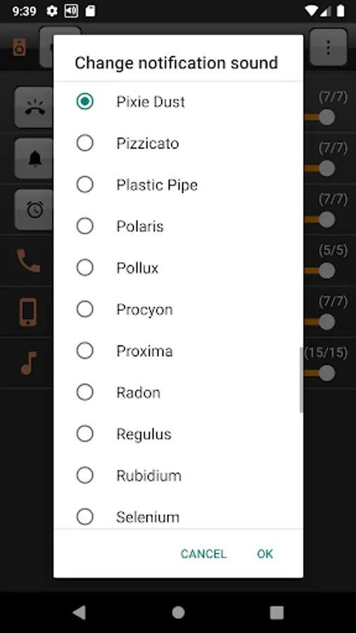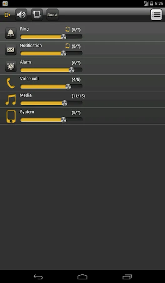 * Quick configuration of the volumes of Ring, Notification, Voice call, Media, Alarm and System.