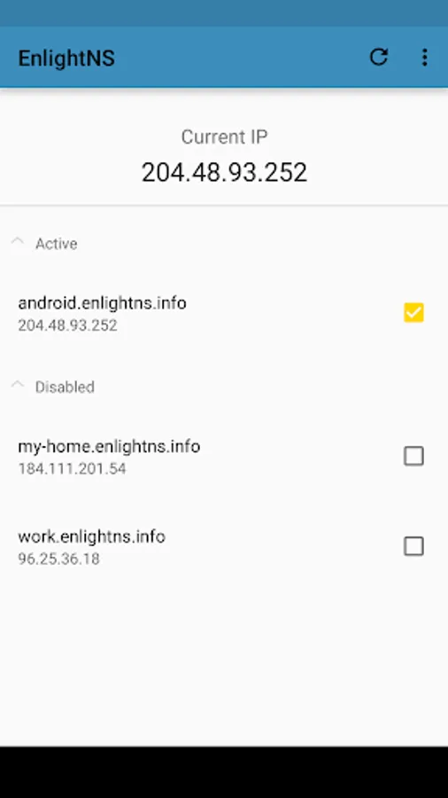 EnlightNS is a Managed Dynamic DNS service. We provide an easy to remember hostname to connect to your remote devices, instead of alpha-numeric IP address. Which mean that now instead of remembering 192.187.756.865 or 2001:db8:85a3:8d3:1319:8a2e:370:7348, which might change if you got disconnected or changed networks, you just have to remember yourname.enlighnts.info and you will be directed to your phone.