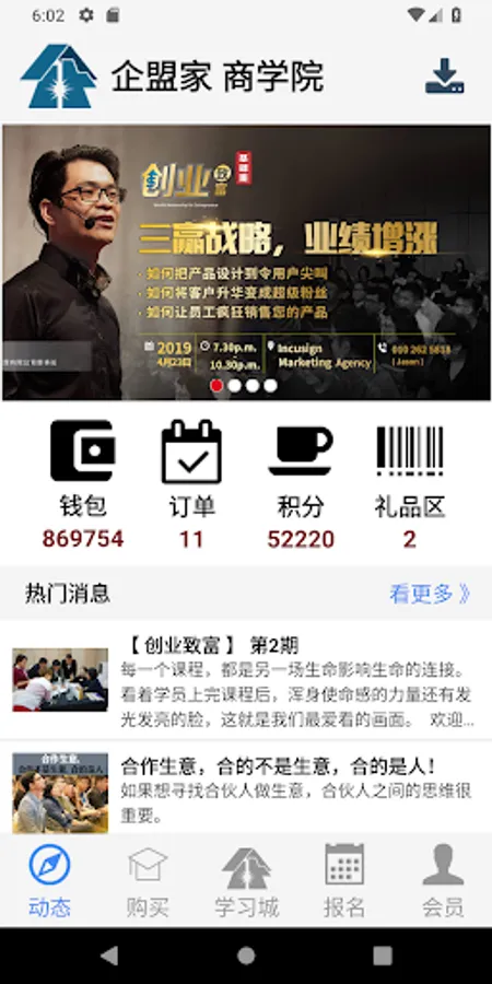1)更进最新动态,让你掌握企盟家的任何第一手消息(课程通知、优惠等)。