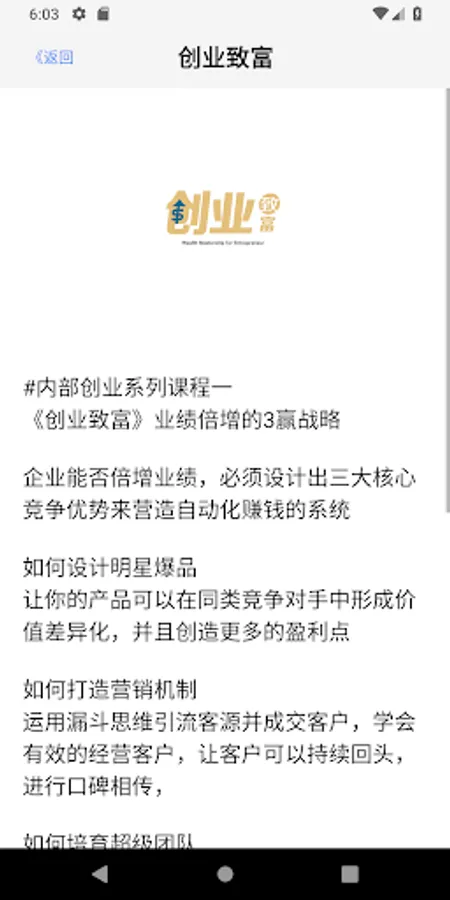 2)网上学习,在【学习城】学习各种创业内容,如语录、免费电子书、课程部分内容等。