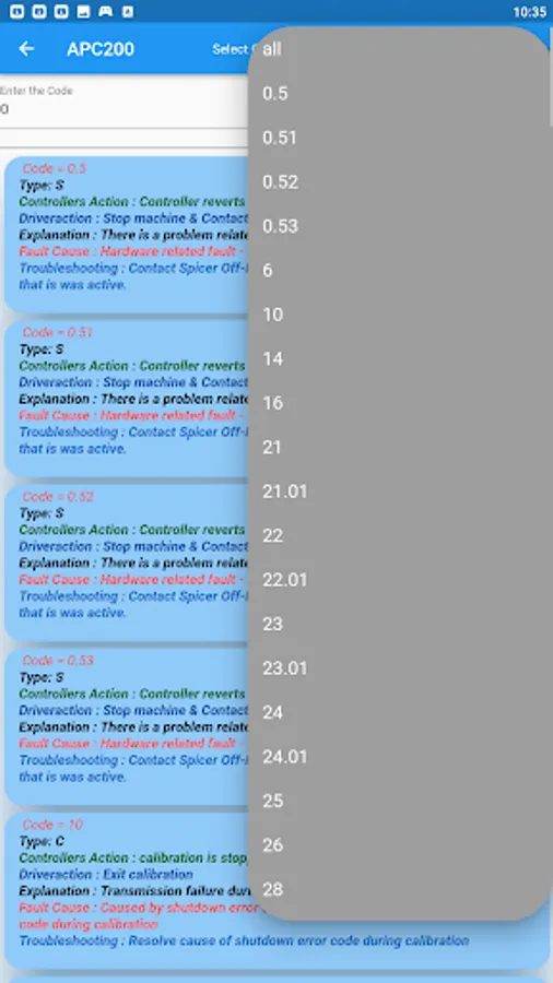 for making easy troubleshooting without printing many documents for faults according to blind codes in the machine