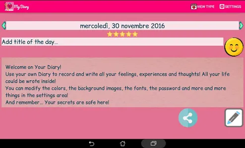 - Rate your day giving from 1 to 5 stars (including full stars and also half stars)