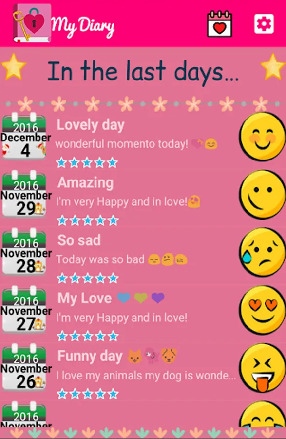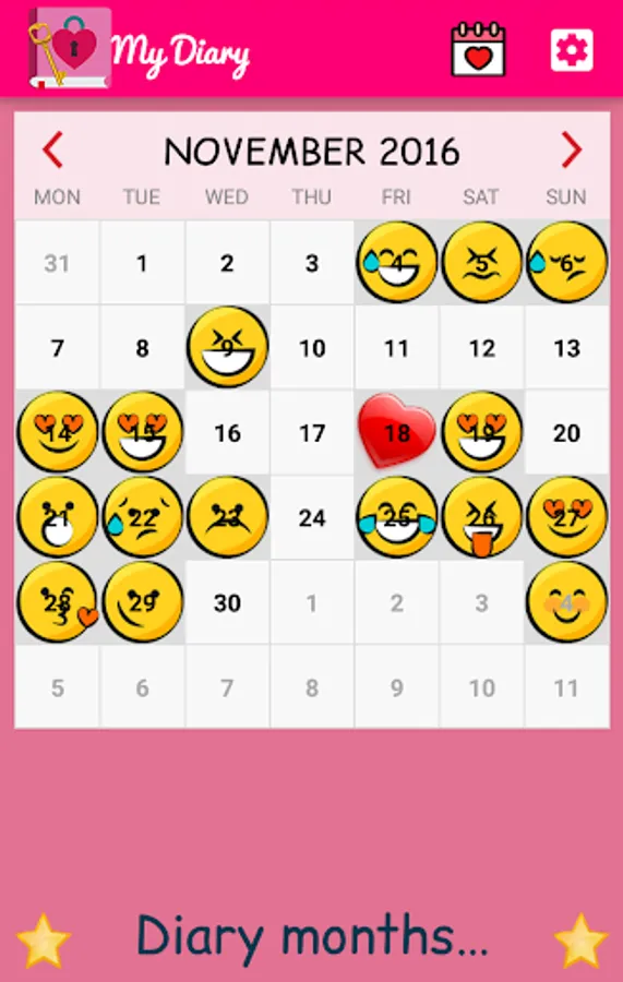 - Select private diary emoticons for each entry