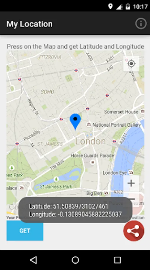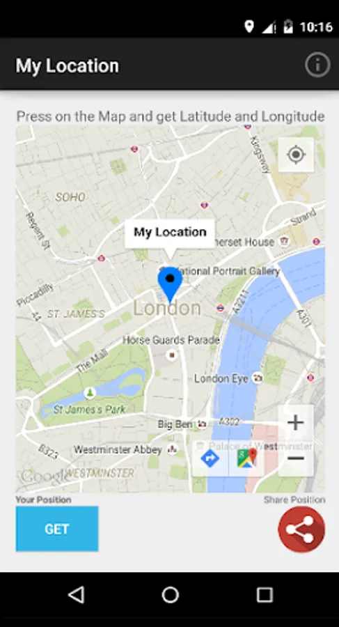 This application informs you about the latitude, longitude of your current location. Soon, if internet connection is available, you'll also get the address of your location. On enabling GPS it will give you the most accurate location.