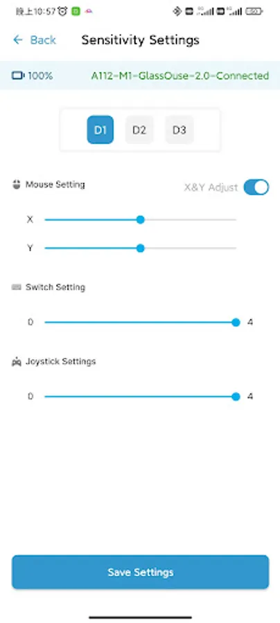 ● Sensitivity Settings: Adjust the app to the sensitivity of the X-axis and Y-axis separately for those who need assistance with upper movement, left movement, and lower bottom movements.