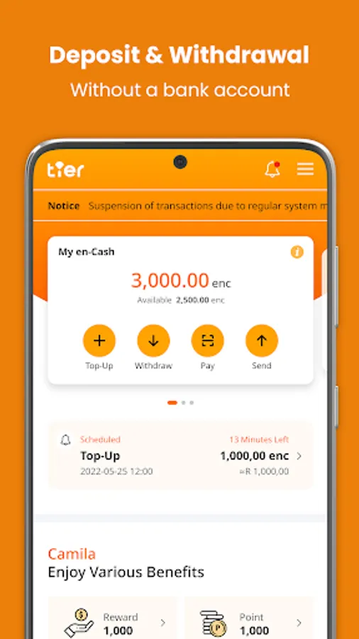 Especially, en-Cash can be topped up simply on TIER app or deposit cash into our deposit-only ATM Machine.