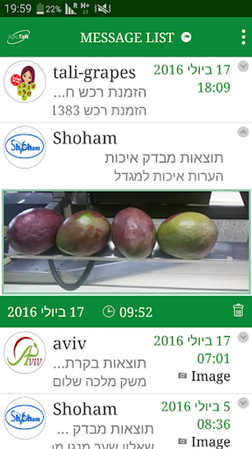 The messages can be: purchase orders, QC results, Customer orders and more.