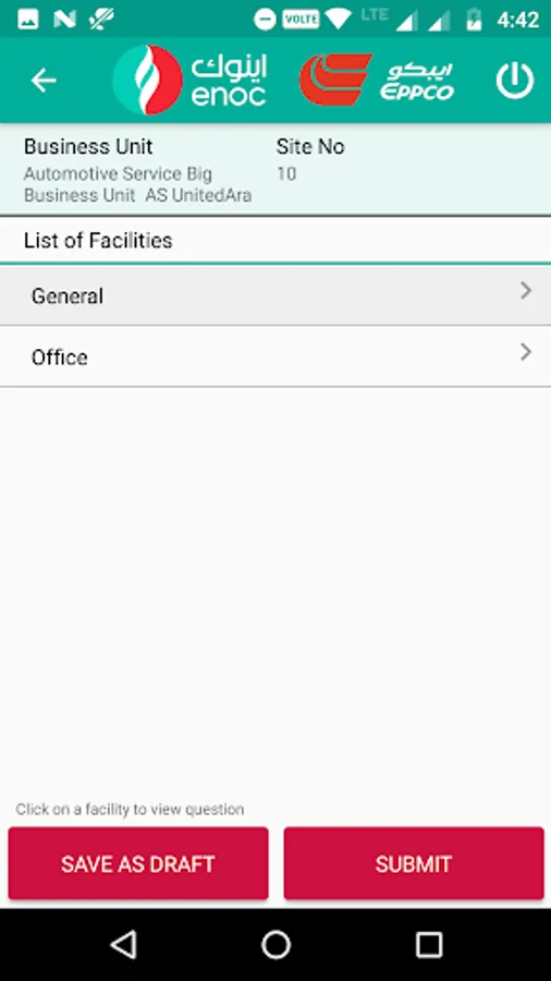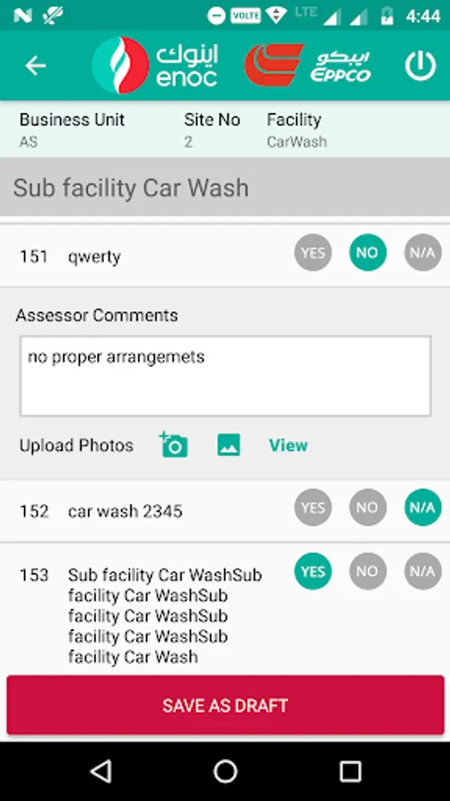App is designed to allow ENOC Retail inspectors assigned by the Quality team to conduct site audit and complete the corresponding questionnaire and add photos as attachments to document their findings.