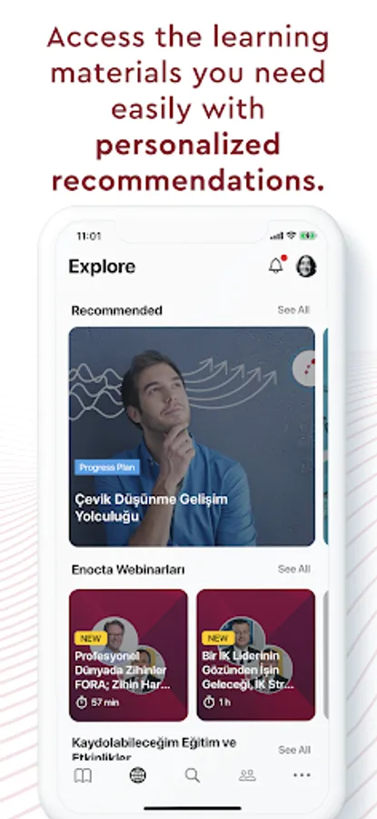 You can also discover the rich Learning and development catalogue of your company and start learning right away with personalized recommendations.