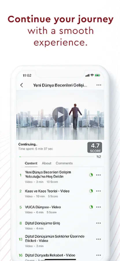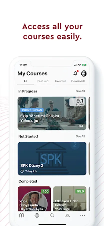 With this application, you can access all your courses and learning plans, download videos for offline view, answer surveys and exams, participate on the social groups available.