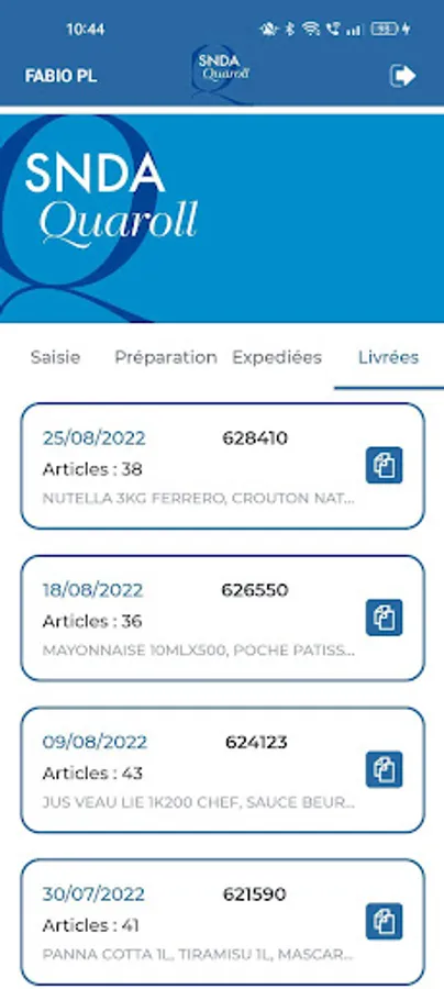 SNDA provides its customers with an application allowing them to place their orders and consult their history.