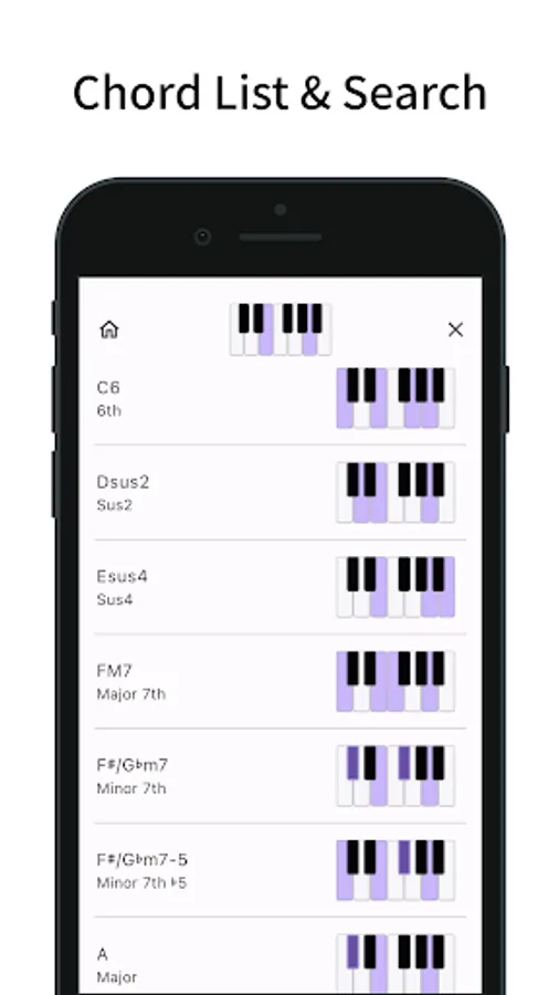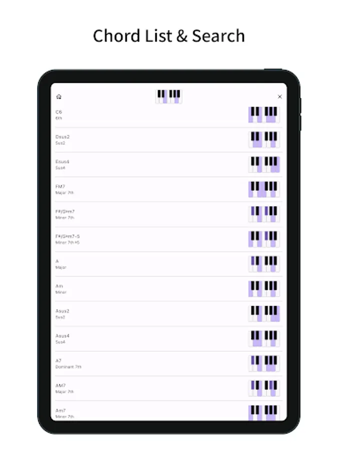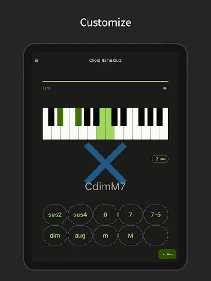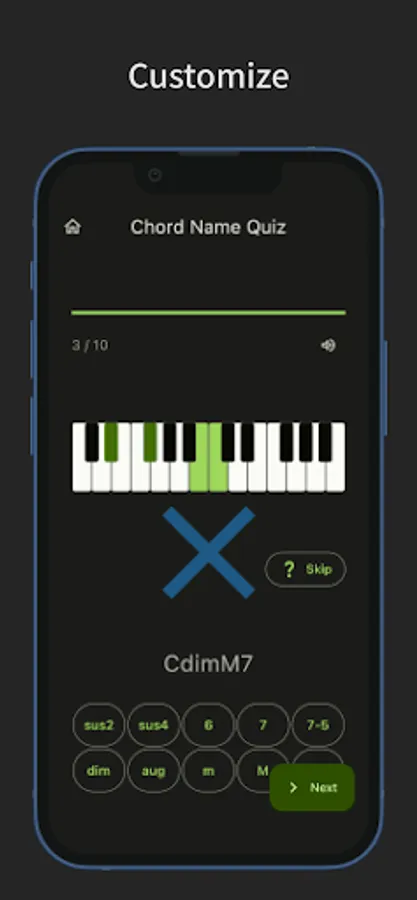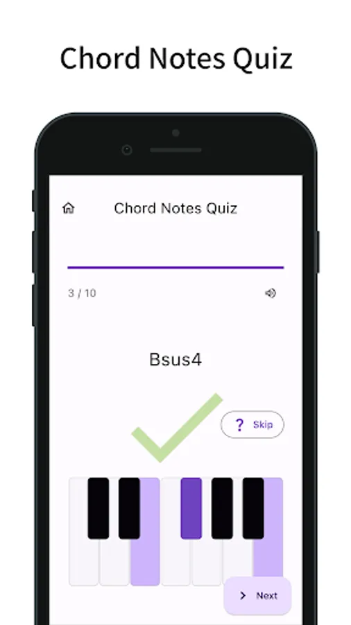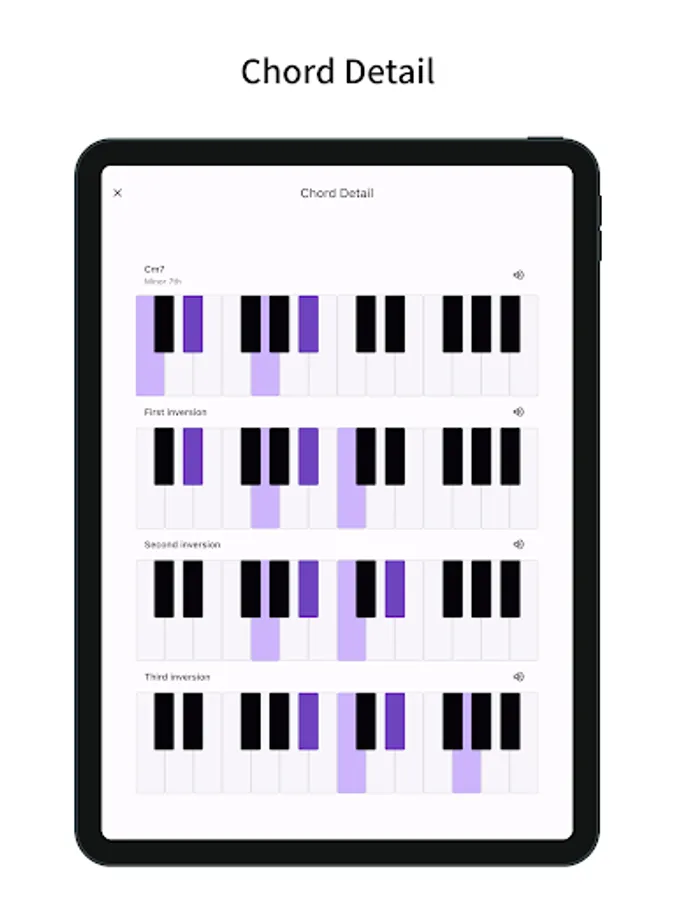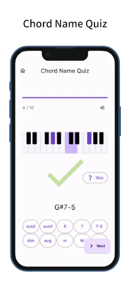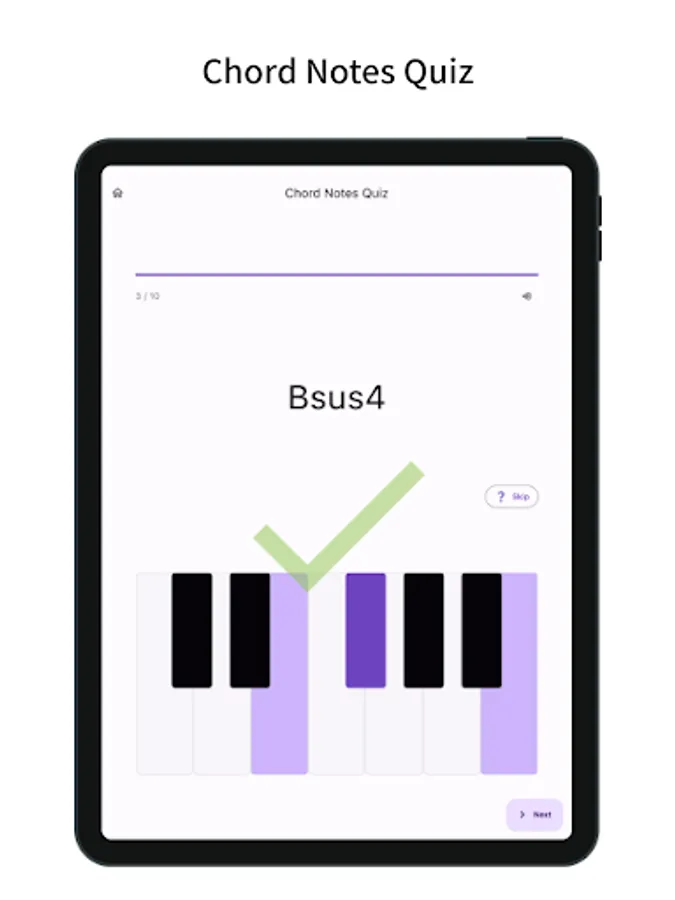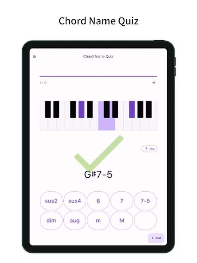 - Chord name quiz (select minor, sevens, etc. with buttons)