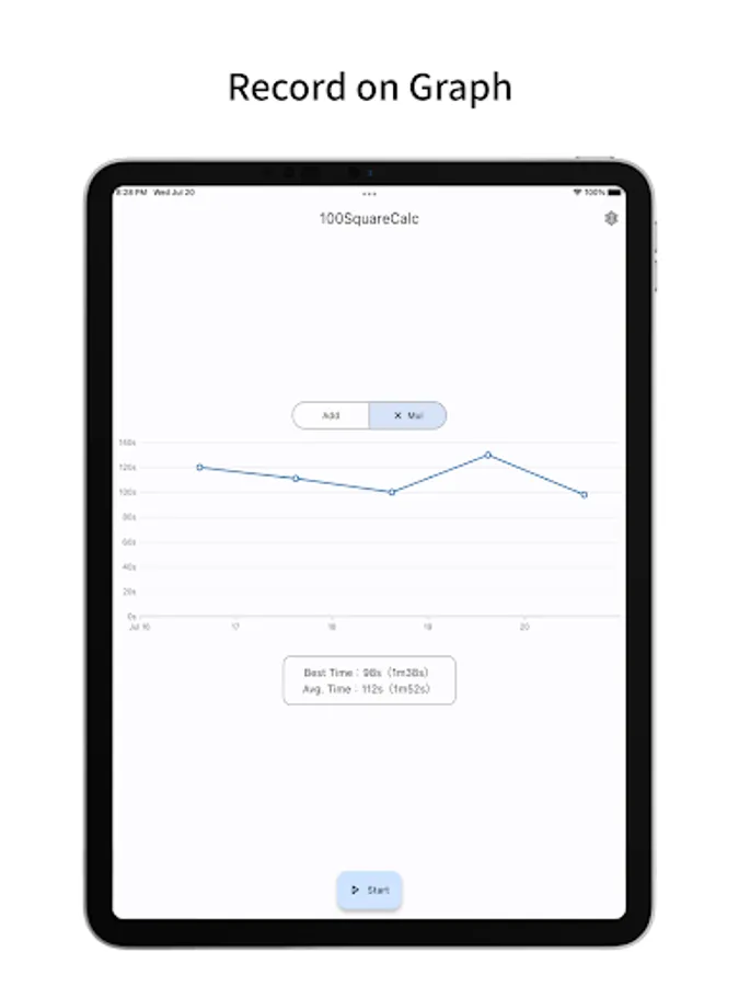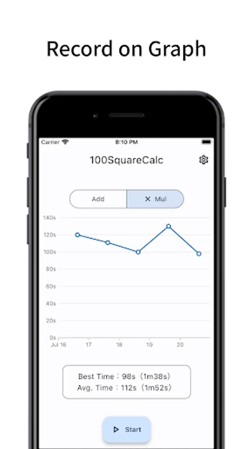 The first screen will show your personal best and average time, along with a graph with your time and date.