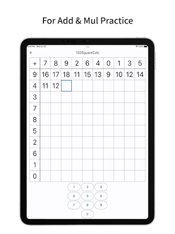 A blue frame will appear in the square to be entered, and you enter the value which is the sum of the topmost number and the leftmost number of the frame.