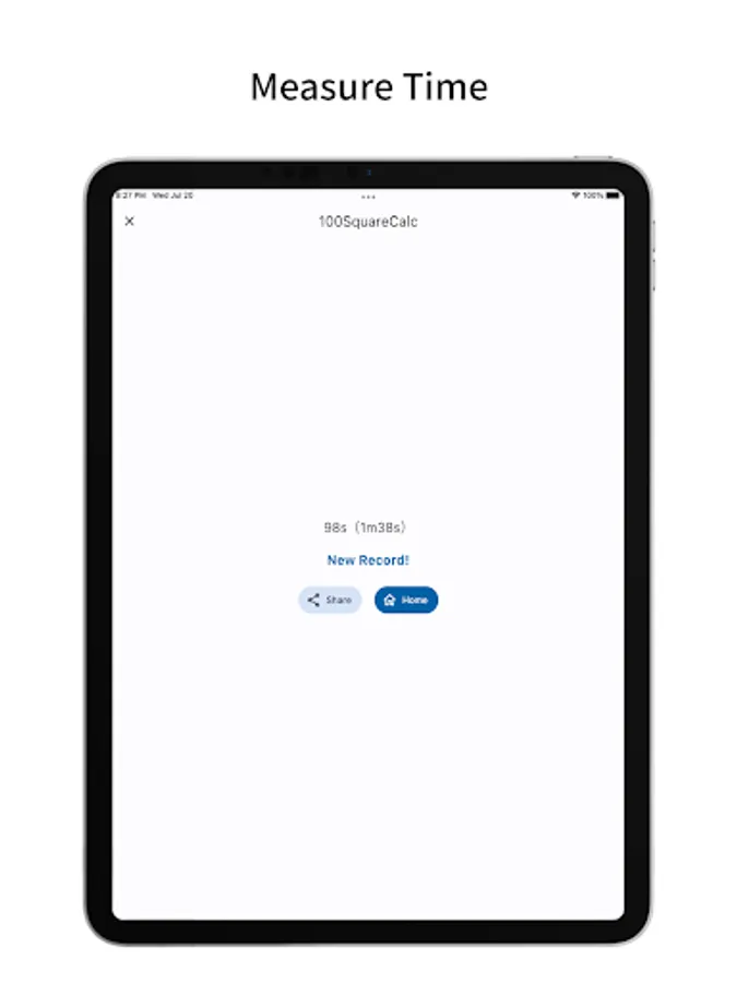 Pressing the start button on the first screen will start measuring the time and allow you to calculate the number of hundredths.