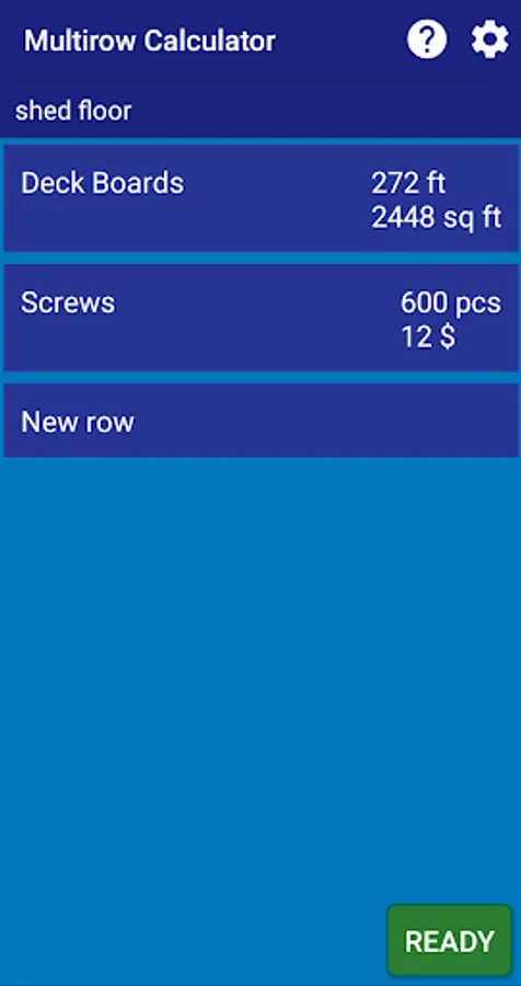 This app was originally designed for my neighbouring sawmill, where they need to take notes of amount of timber sold to a customer. I decided to publish the app for free, just in case some other people find this useful for their needs. And in case you'd need an extra feature added to the multirow calculator, or you need some other kind of app for your business needs, feel free to contact me. Pressing the ? icon opens up help screen with my e-mail.