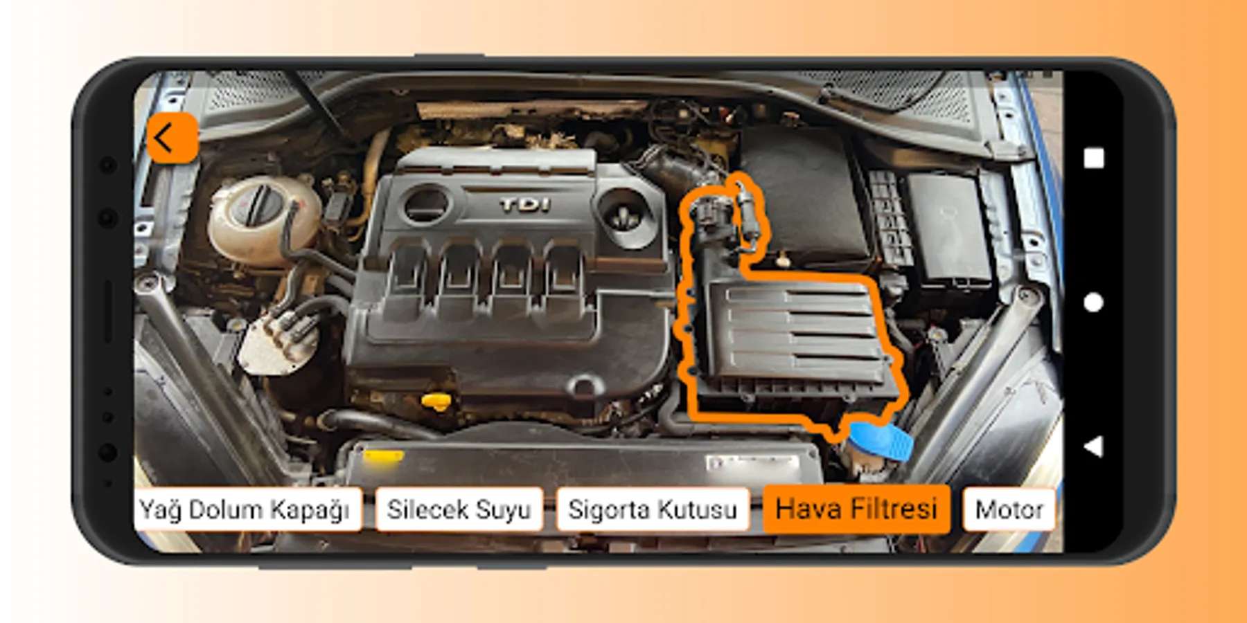 - You can examine the vehicle under the hood images that we tried to choose from different types, by clicking on the names of the engine components at the bottom of the page on the review screen, you will see that the component you selected in the photo is drawn around, so you can learn the engine.