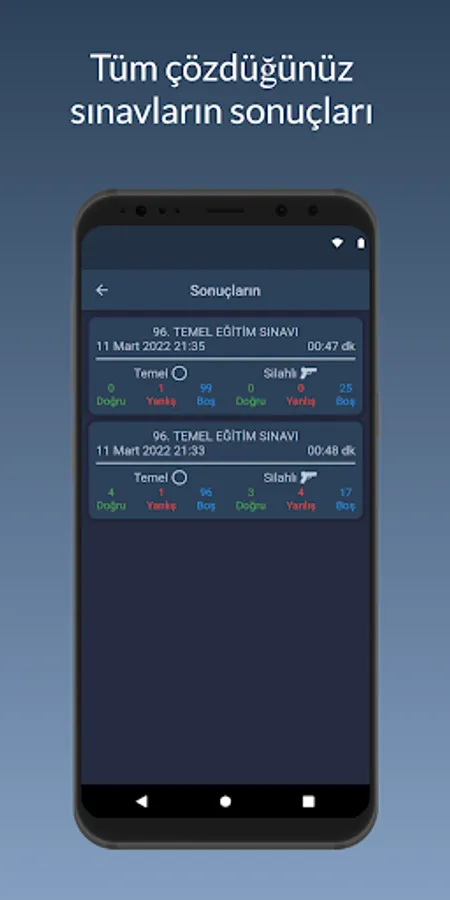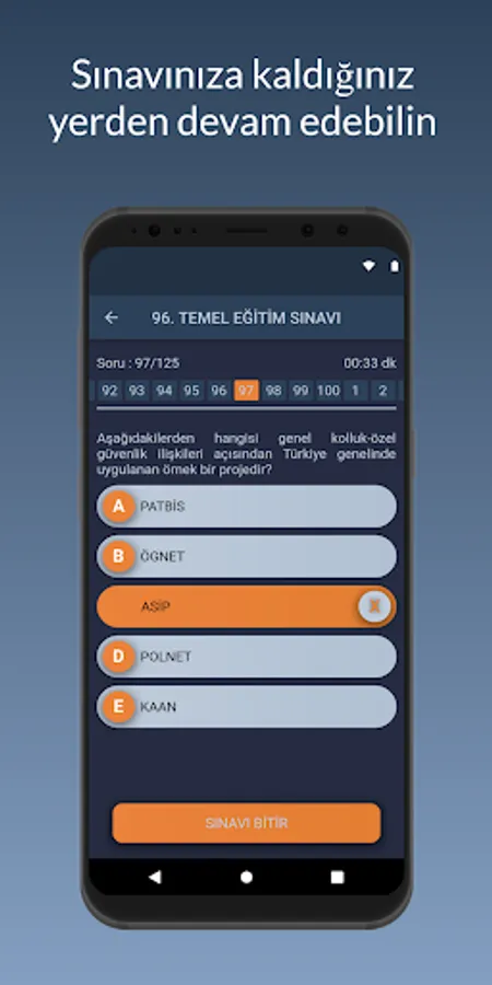 - Solve your exam easily on the exam screen designed with the logic of swiping left and right.