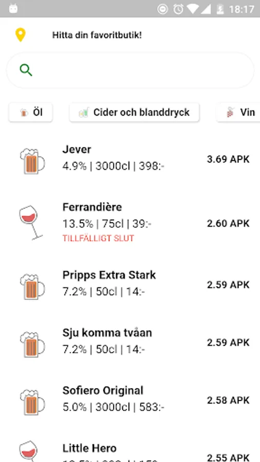 The app helps you browse Systembolaget's (Government-owned liquor stores in Sweden) all products by APK! Browse the products in your favorite Systembolaget store