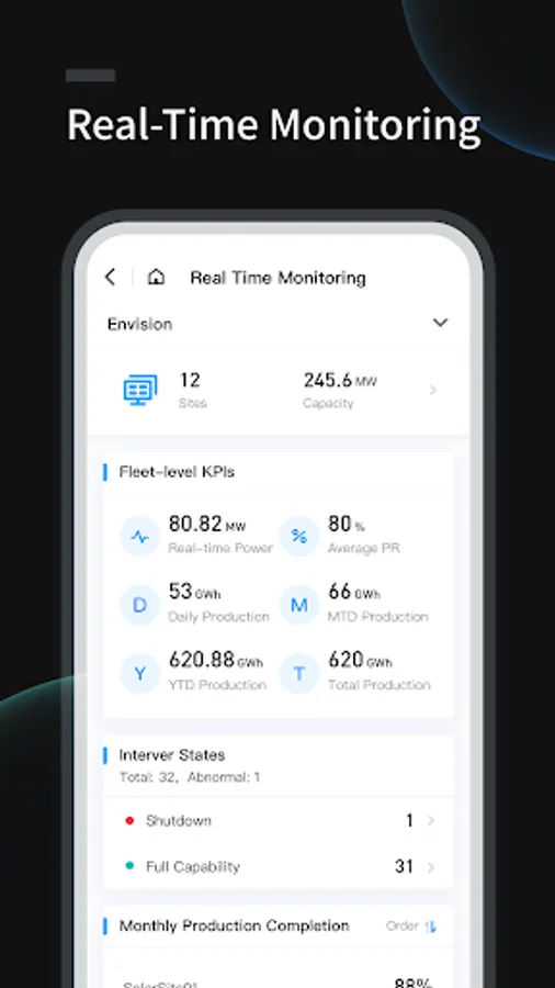 Based on the newly upgraded EnOS intelligent IoT operating system, EnOS Mobile provides centralized monitoring, alarm statistics, performance analysis and statistical reports for wind power, PV and other energy assets, helping you to master the operation of power generation assets and make business decisions anytime and anywhere.