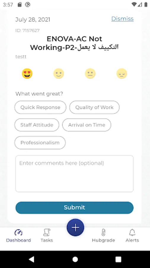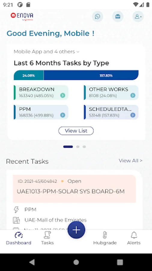 EVO mobile app is a one-stop shop for Smart Energy & Facilities Management Services. It provides transparent real-time data on energy and operational performance. Access your customized report breakdowns from everywhere and at any time. Raise tasks instantly, receive status updates, and rate the service received after task completion. View your facility performance through Business Intelligence reports BI and get live data indicators such as Live Temperature, Live Indoor Air Quality IAQ and Humidity from Hubgrade.