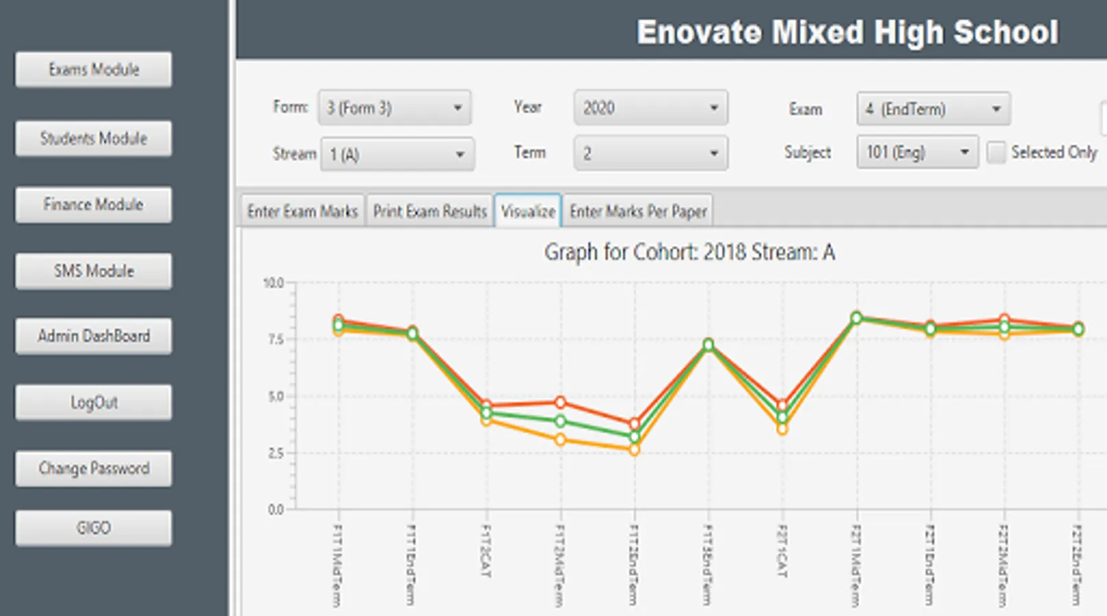 Enovate is an innovative software for exam analysis. Kenyan high schools can use the system to get in depth analysis of student exams. It is accessible to both teachers and parents. Student performance in school is presented instantly once each exam is done.