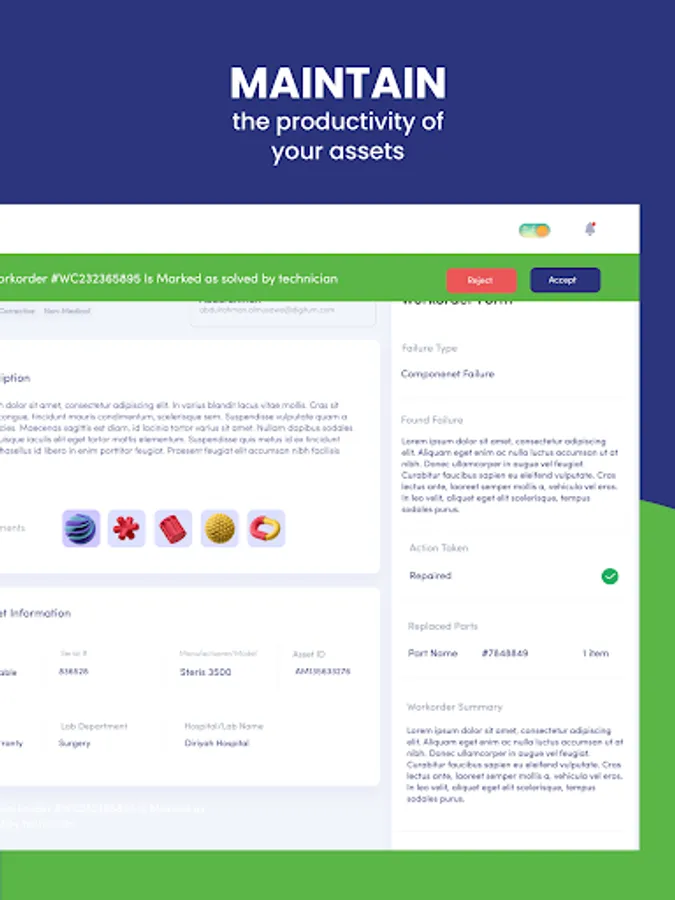 With a rich and transparent dashboard, simple maintenance request creation, inventory and spare-part stock management, and customized notifications, Enoviimax provides a comprehensive and smooth asset performance management experience on both web and app platforms.
