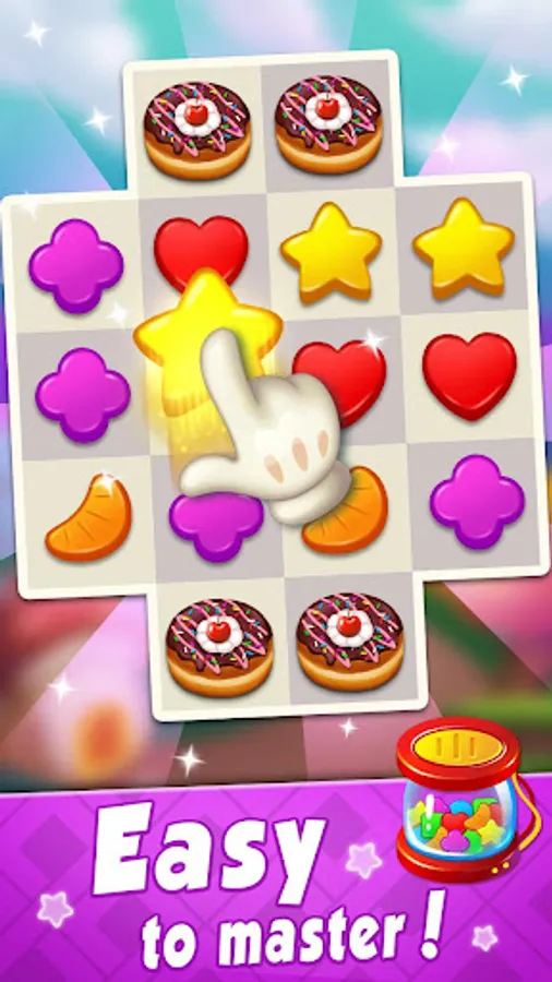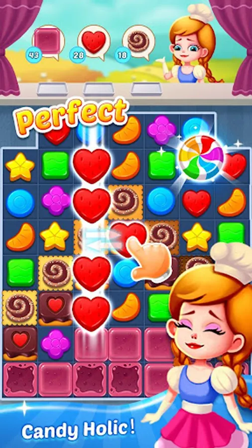 Match the same kind of candies to 'get them'!