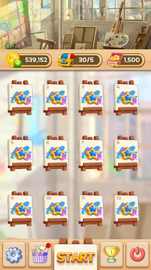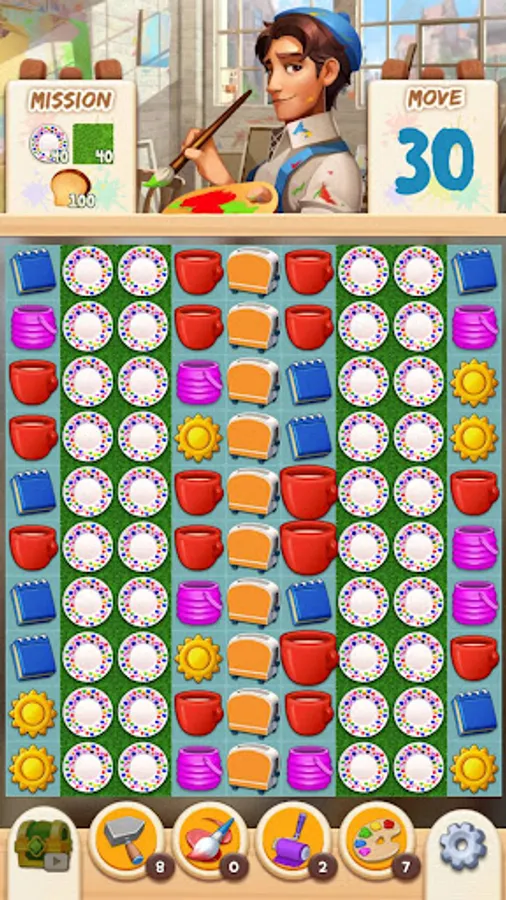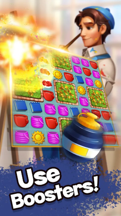 Experience the joy of a paint-splattered canvas in the artist's studio with our Match 3 puzzle game! Stimulate your imagination with unique pictures and palettes. Have fun creating color combinations to complete your artwork. Discover the fun of color-matching and unlock your creativity today!