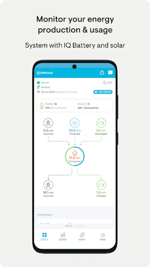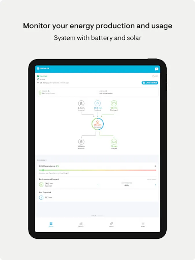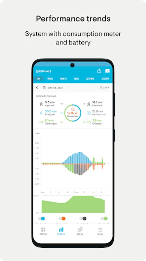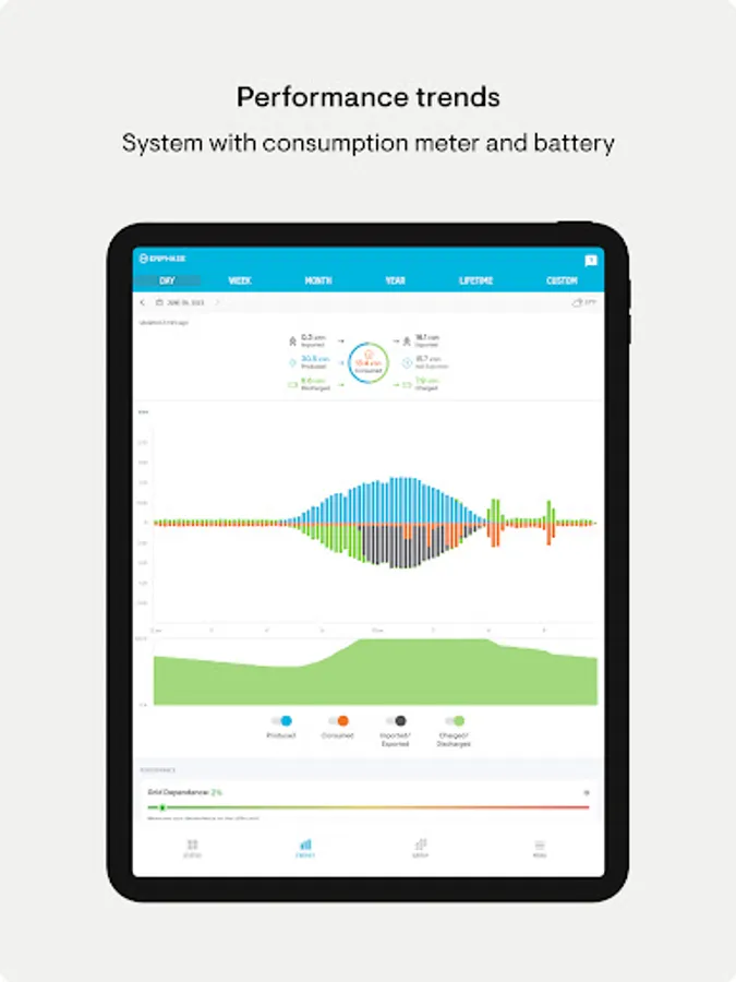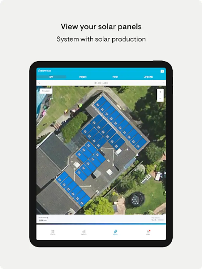 - Run reports of energy production and energy usage from the app