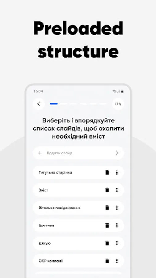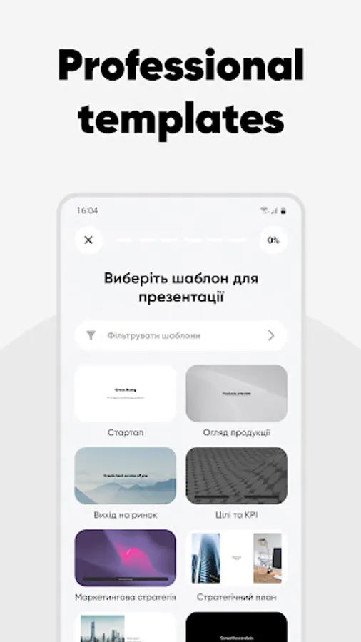 Presentation maker app is an app that allows you to create professional and inspiring presentations quickly and easily on your phone. Does not require design skills and structuring slides thanks to ready-made templates and blocks.