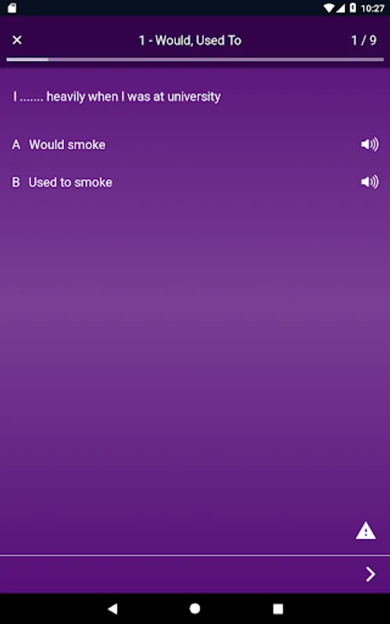 This Advance English is a free app and supports offline, you can study advance english with app even no internet connection. You’ll be find a clear, simple and colourful interface. All tests and choices have a option that you can listen to the correct pronunciation