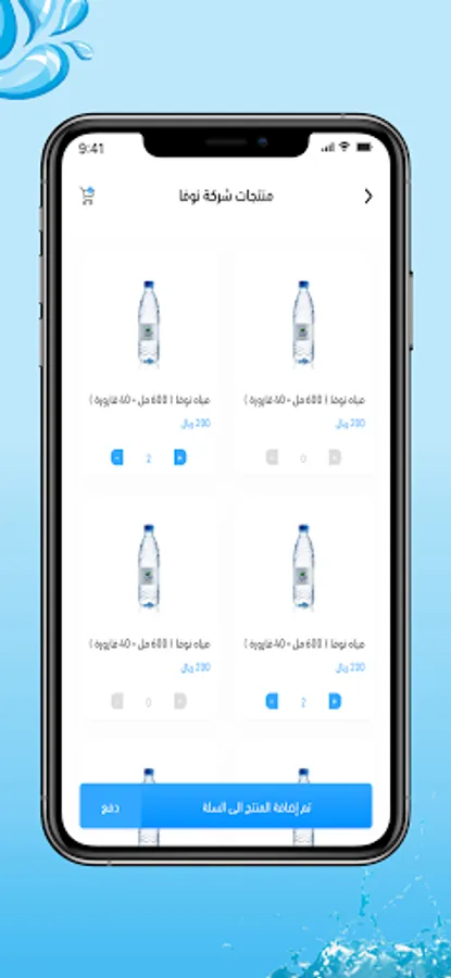 Qatat app includes many different types of water, where customers can select favorite products, complete the purchase process, and choose the type of payment, whether mada, credit card or cash, and requests are received from our representatives within the specified time and with the best quality.