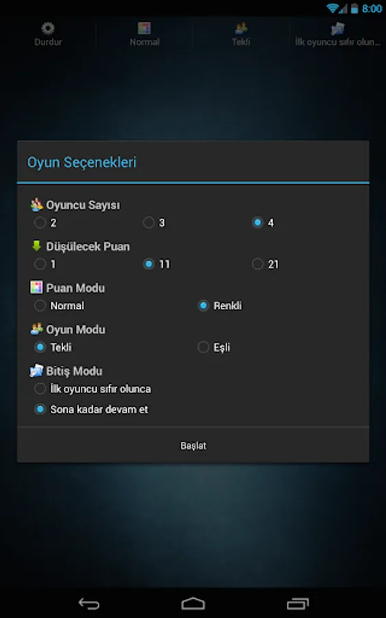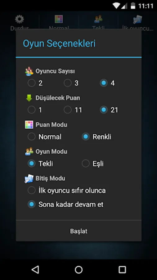 . 2 kişi, 3 kişi, 4 kişi oynama.