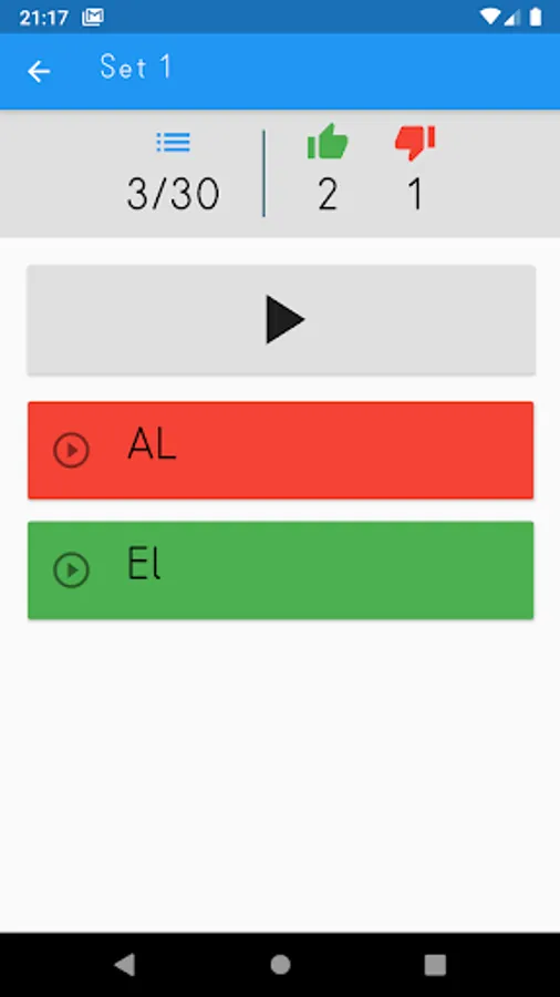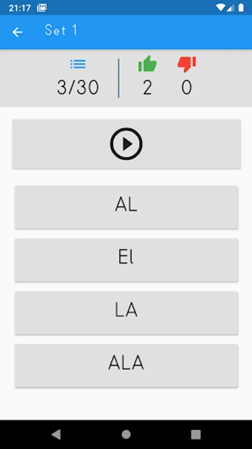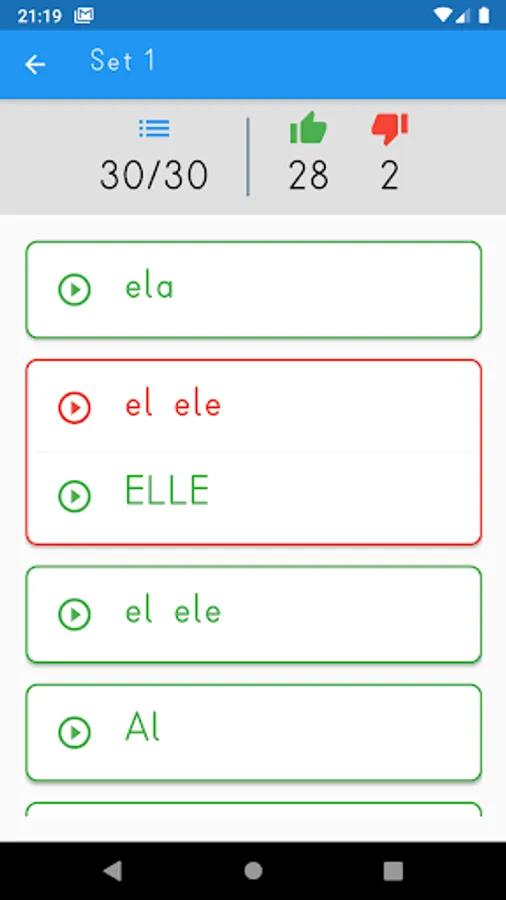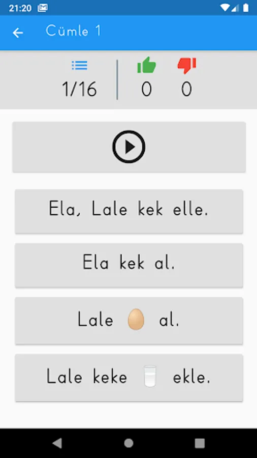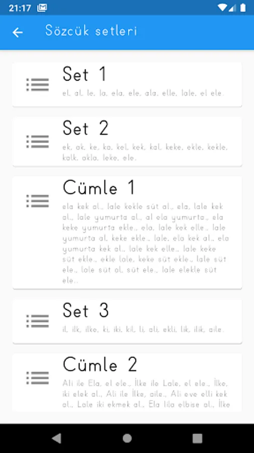 The First Reading application provides words and sentences in sets according to the order in the system.