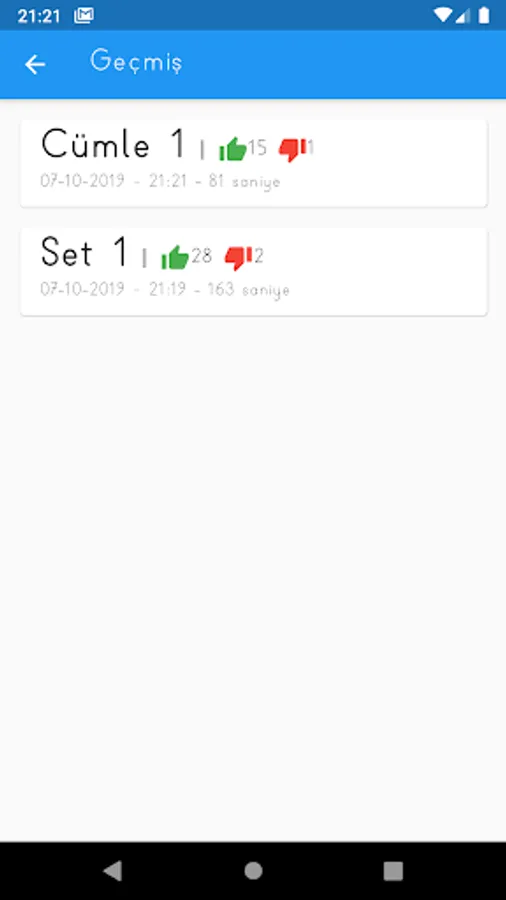 - With the History button, you can see the correct, incorrect and how long the completed sets are completed.