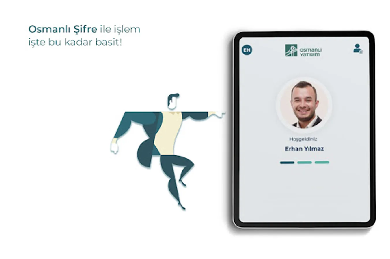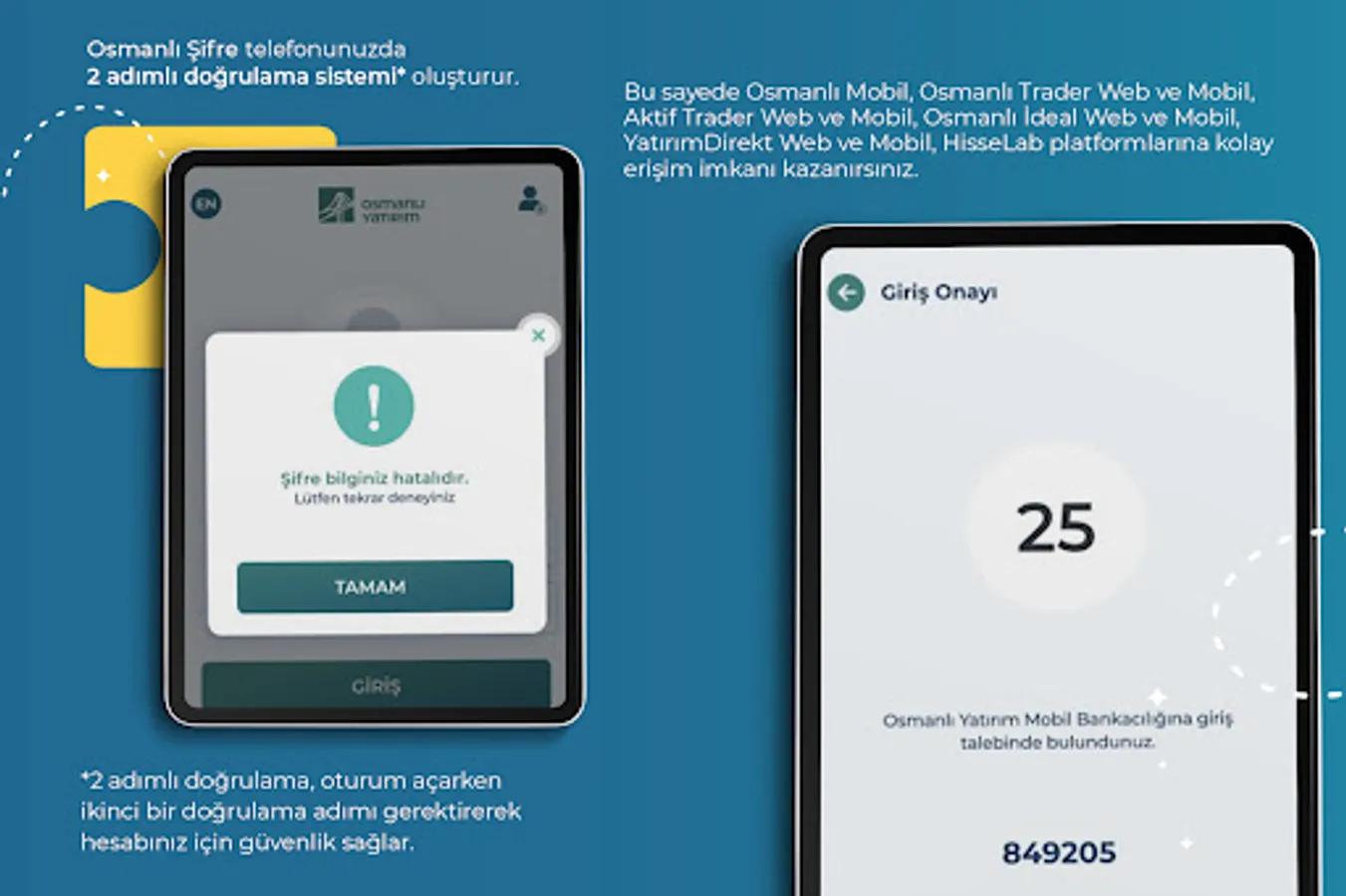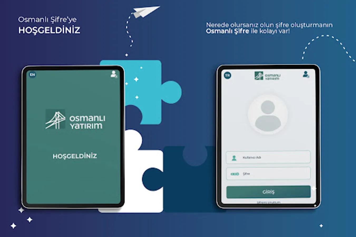 The "Ottoman Password" application, which belongs to Osmanlı Yatırım, will be used by pairing the mobile devices of the customers. The Ottoman Password application is a mobile application that allows a one-time match to your account.