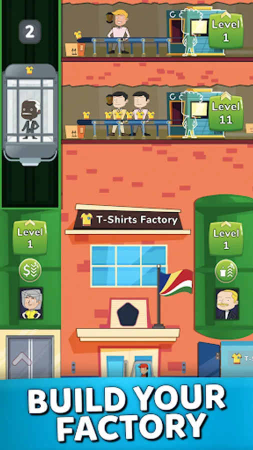 Start with just a T-Shirt factory and turn it into a major many factories business. Unlock sectors such as clothes, computer, furniture and kitchen offering high-quality products.