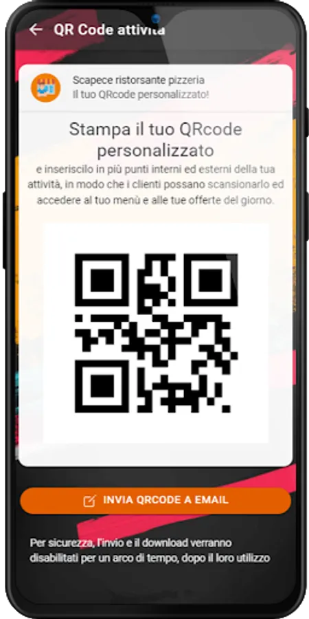 Print the QRCode that the app will have generated for you and distribute it in your restaurant (at each table or outside). Your customers or POTENTIAL customers will be able to read and discover the PROPOSALS of the DAY easily and quickly.