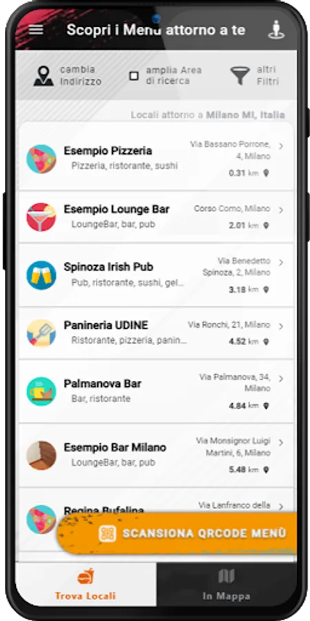 Above all you will be able to view the menu, discovering what surprises you, of all the places around you or around a specific address.