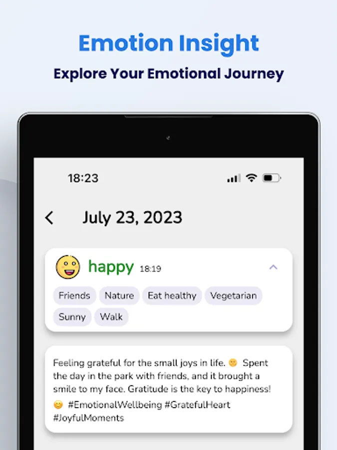 Activity Log: Track your daily activities and see how they impact your emotions. Gain a deeper understanding of the correlation between your actions and emotions.