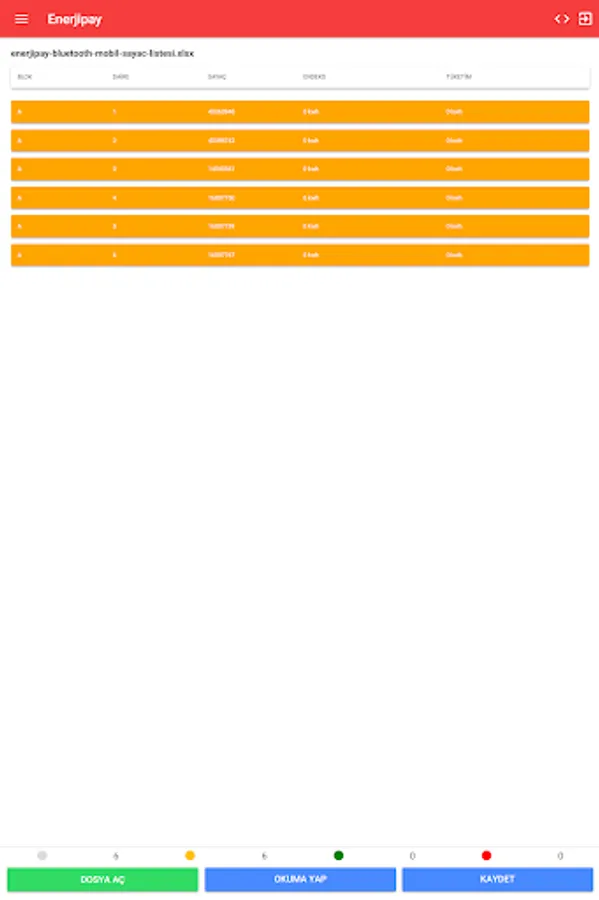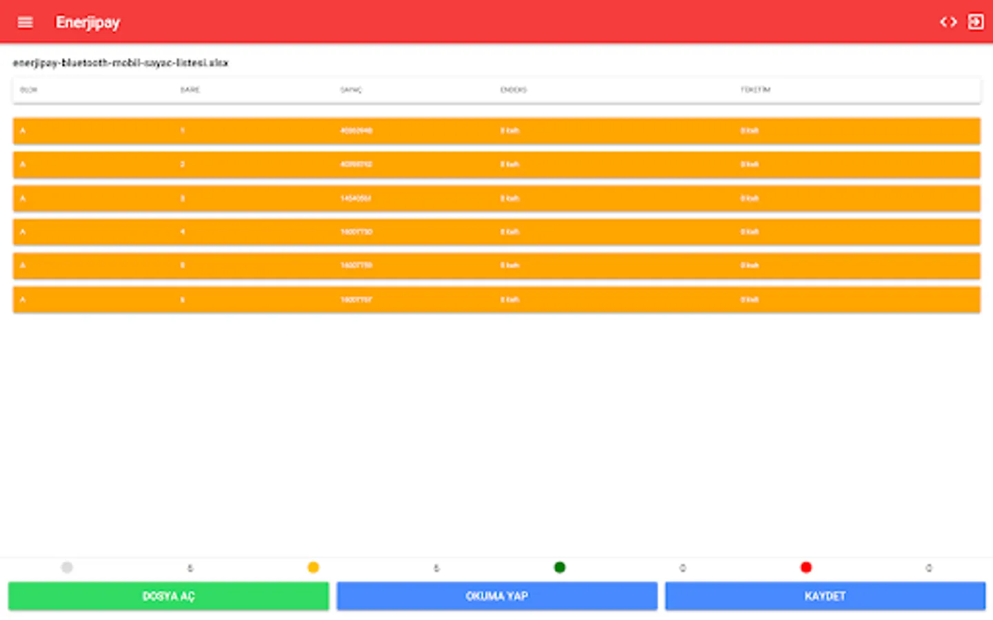You can read and share index data from all Calorimeter, Hot Water, Cold Water meters that support EN 13757-2 - EN 13757-3 standards by EnerjiPay Company with your smart phones or tablets. With EnerjiPay App, you can earn unlimited time without any problems with the EnerjiPay brand BTM-Bus Converter that you will purchase. The software is compatible with Bluetooth Mbus Converter and automatically recognizes the drivers. In this way, you can start using it quickly without the need for any installation. Enerjipay App is an unlimited trial version. You can share your comments and expectations for new versions of the software via the e-mail address support@enerjipay.com.